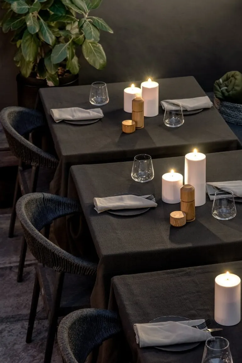 Uyuni Lighting’s Outdoor LED pillar candle is a safe way to create a warm and inviting atmosphere in outdoor spaces – the kind that can only be achieved with the gentle flicker of a burning candle. The water-resistant and UV-protected Outdoor LED candle is equipped with Uyuni’s patented 3D flame that mimics the fluttering of a regular candle, glowing softly in a warm white tone.