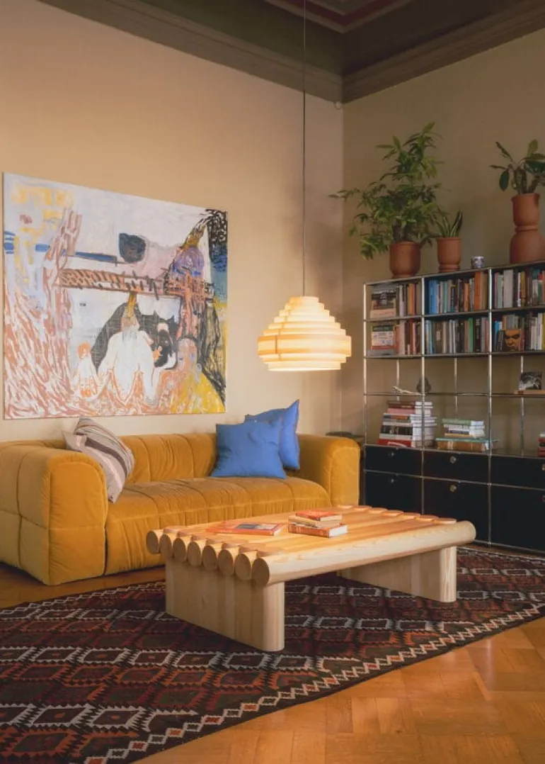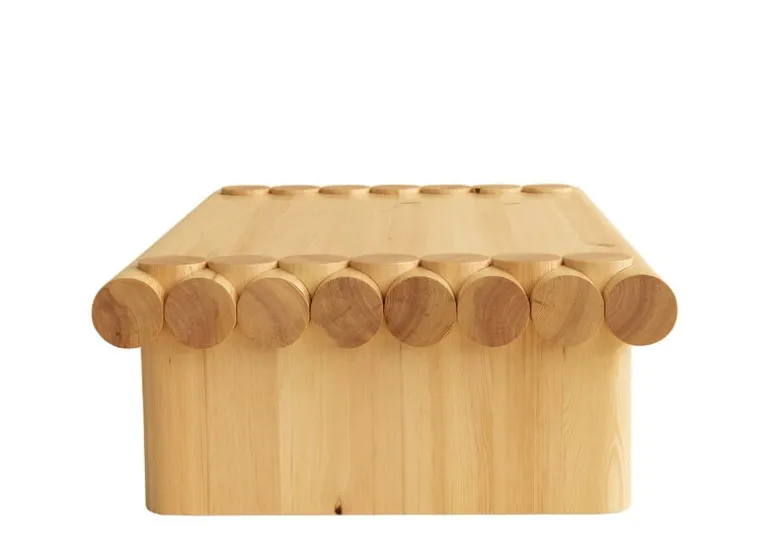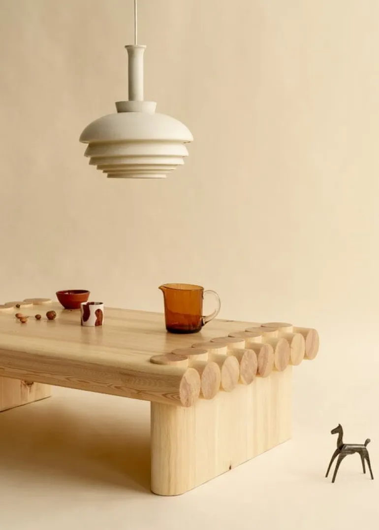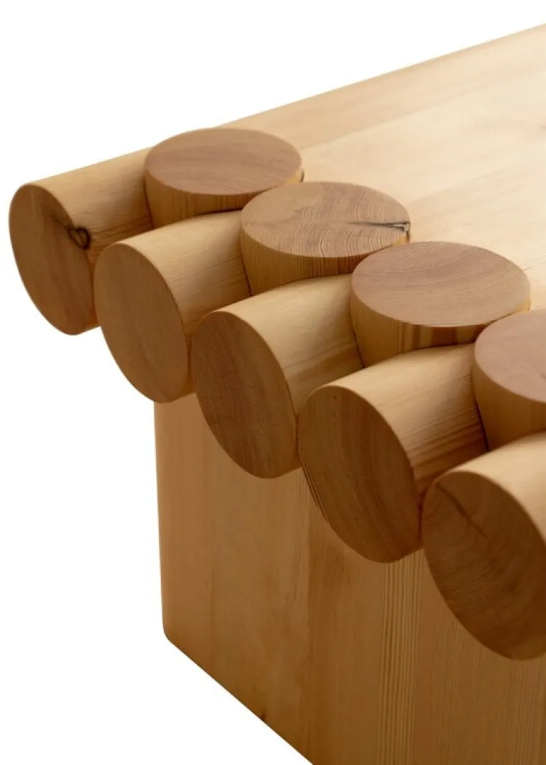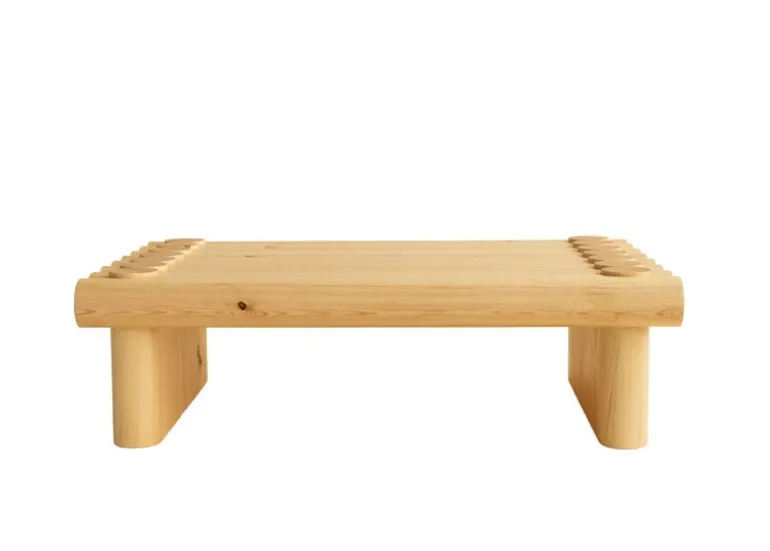 Vaarnii’s pinewood coffee table is sure to catch the eye, whether due to its exaggerated proportions or the unusual choice of joinery. Created by Soft Baroque, the design draws from traditional joints often used in Finnish log cabins to create a striking construction that is also incredibly strong and solid: the coffee table is sturdy enough to sit, stand or even dance on!