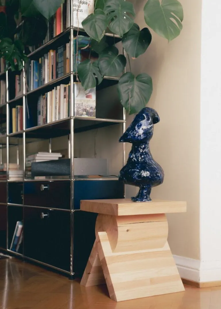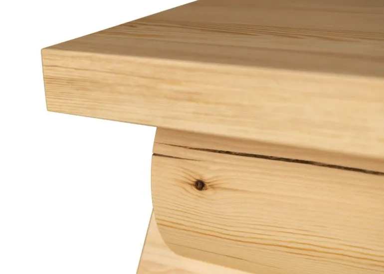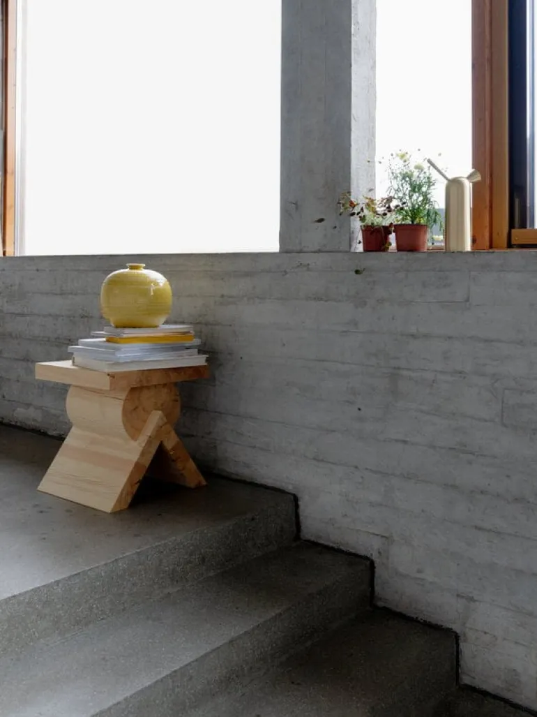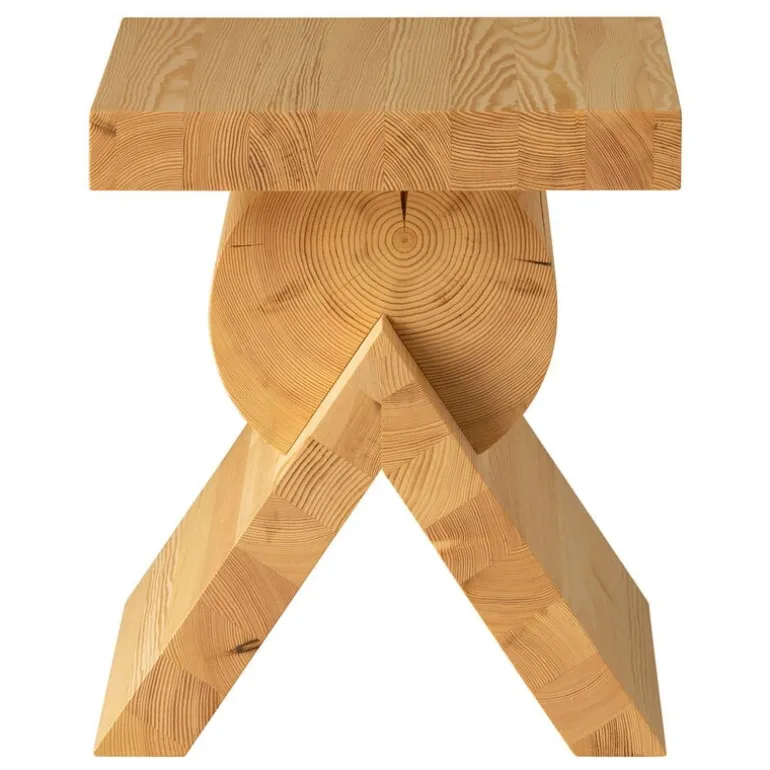Crafted from Finnish pinewood, the fascinating design will become even more interesting over time, as the natural oils and resins of the wood will react to UV rays and slowly turn the table’s color into a lovely honey shade. Pine is also softwood, meaning that scratches and dents are bound to form on the surface. Vaarnii encourages you to embrace these imperfections and see them as characterful signs of aging that only add to the allure of the piece. The multifunctional small table also works well as a stool or bench.