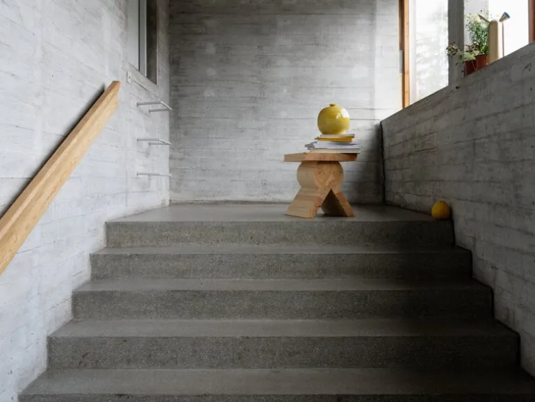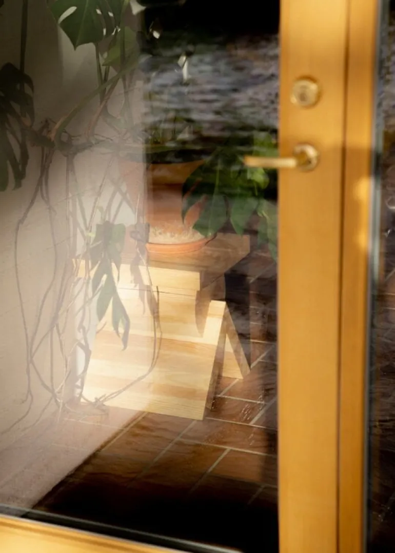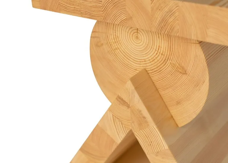 Vaarnii’s AA side table, designed by Kwangho Lee, consists of three seemingly simple elements stacked on top of each other: a slat functioning as the tabletop, slanted legs forming an inverted V-shape, and an entire log in the middle. However, joining the three is no simple task, as it actually requires a lot of skill and know-how from the carpenters.