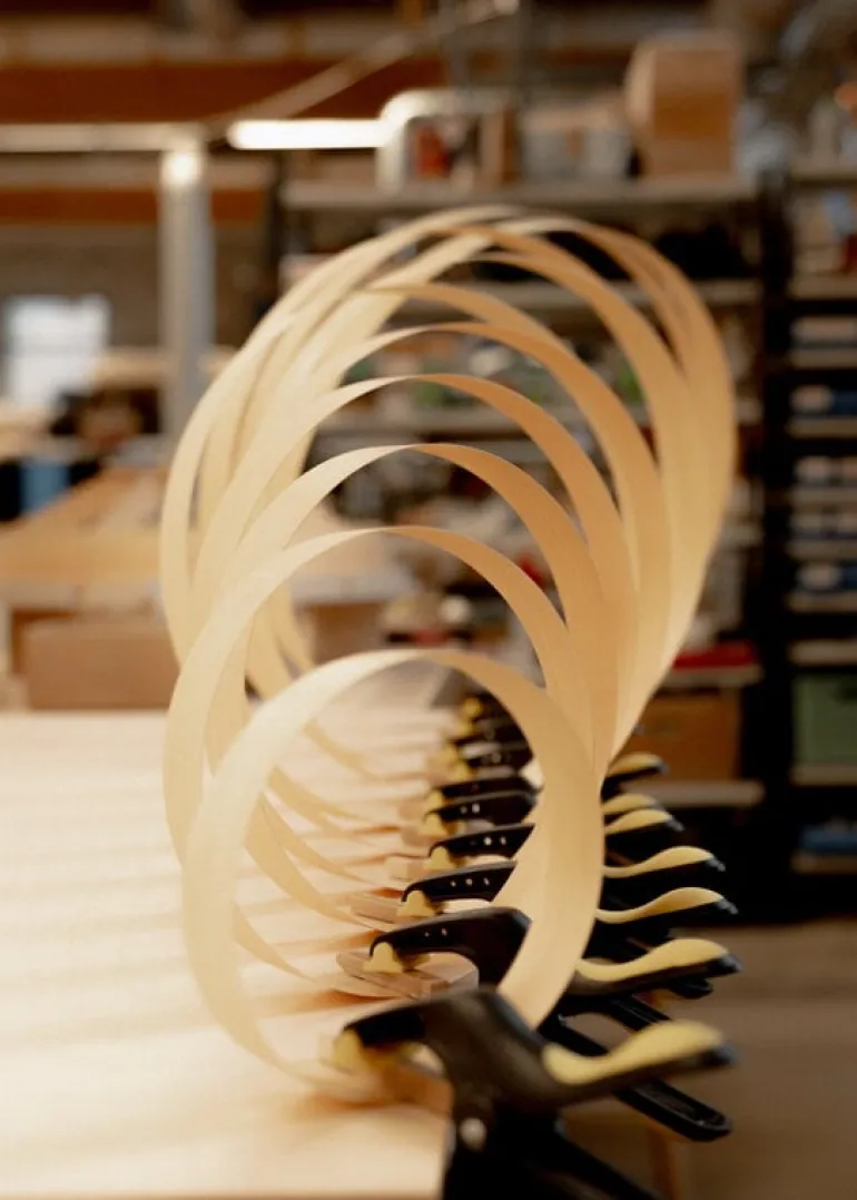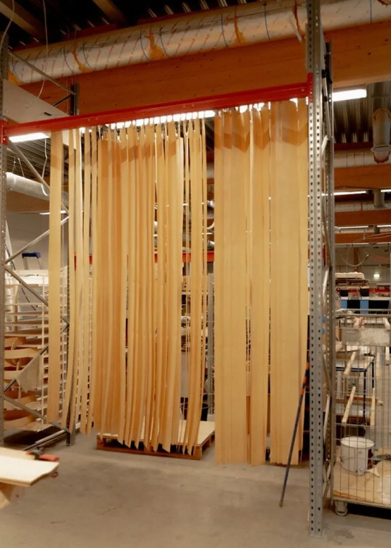 The natural pine wood is the perfect choice for a captivatingly beautiful luminaire: the light shines through the living wood surface with a soft honeyed glow, inviting you to come closer. The grain patterns add softness and natural charisma to the look of the luminaire. The atmospheric glimmer of the Hans ceiling lamp is ideal for brightening up lobbies, hallways and corridors as well as public spaces.