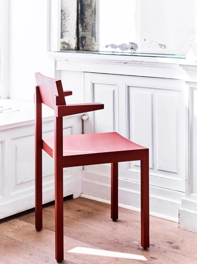 Silent armchair by valerie objects has been stripped of all the extra. Designed by BIG-GAME, the Silent collection was born from the designer trio’s desire to create something quiet in a world where there is already enough noise. In search of inspiration, their journey led them to the real chapel of silence: a church. The minimalist design of the Silent chair is a take on the classic church chair, with a modern twist. The contemporary touch is crowned by the seat’s color, which could be described as anything but quiet – so bright and lively it is! Made of solid wood, the seat is the perfect match for other chairs and tables of the Silent collection, but its simple look complements other dining groups and furniture, too.