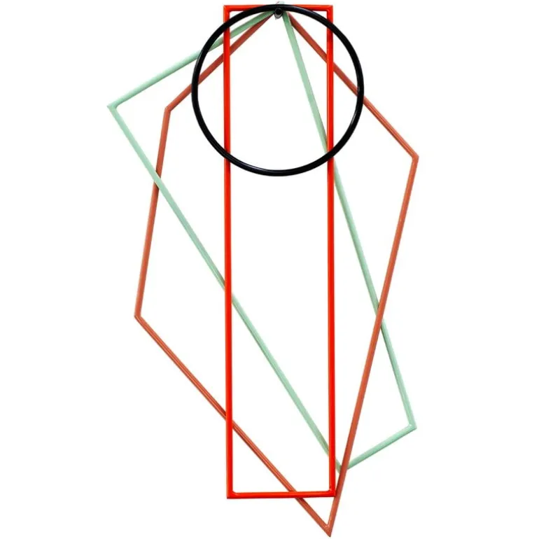 Stripped to the bare minimum, the trivets consist only of a thin steel outline. When not in use, the trivets can be stored on the wall. The mix of different geometric shapes creates a work of art that is simply abstract lines, changing according to how the four trivets are hung on top of each other.
