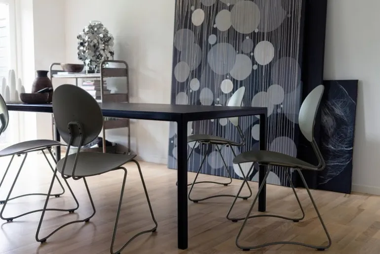 The Flex chair is manufactured sustainably: the chair is made from 100% recyclable polypropylene, and all residual material from the chair’s manufacturing process is recycled at the factory. Standard screws are used to assemble the chair so that it can be easily disassembled if any parts need to be replaced. This significantly extends the product’s life cycle while facilitating the recycling of parts made of different materials.
