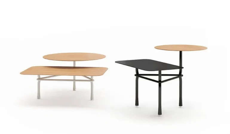 Viccarbe’s Tiers table is a multi-purpose side table that can be used, for instance, as a coffee table, bedside table or plant table. Designed by Patricia Urquiola in 2010, the Tiers table is composed of a steel frame and oak and MDF tabletops in different shapes and heights. The expressive, graphically minimalist Tiers table is ideal for both home use as well as public spaces and offices.