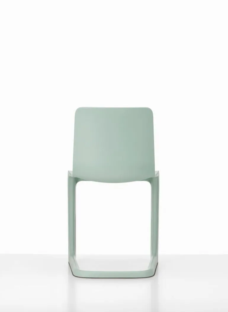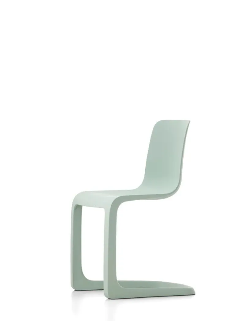 The Vitra EVO-C is a plastic chair designed by Jasper Morrison in 2020, whose sleek expression represents the supernormal design that is typical of Morrison, stripped of all unnecessary details. The chair is a fresh interpretation of the classic cantilever chair: it seamlessly combines the L-shaped leg structure familiar from metal-framed chairs with an ergonomic seat that flexes comfortably when sat on. EVO-C is made of only one material, polypropylene, and is therefore 100% recyclable.