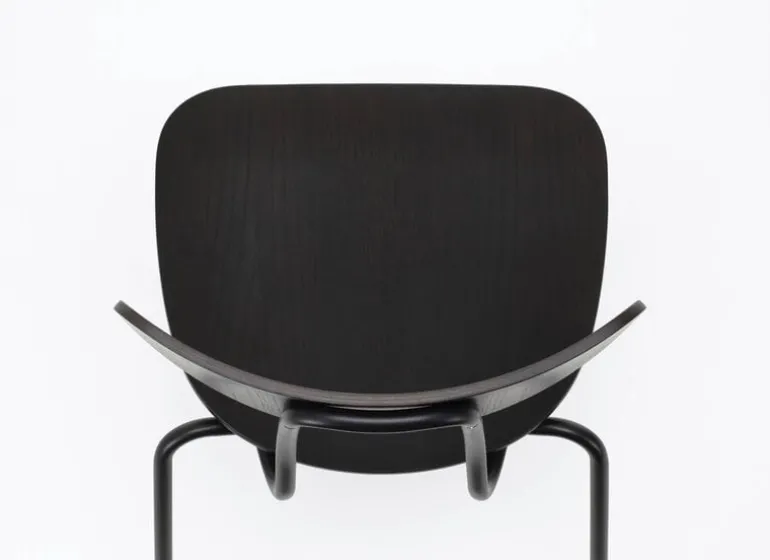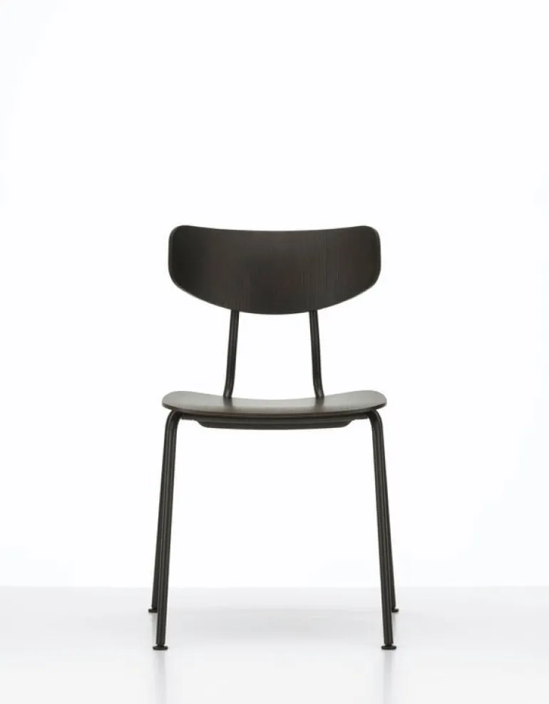 Moca’s frame consists of two metal tubes, one of which forms its rear legs and the other the front legs as well as the backrest support. The seat and backrest are made of veneered plywood, which makes the chair light and therefore easy to move or stack. Peeking under the chair reveals an inconspicuous but practical detail, very typical of Morrison: the bottom of the seat is covered with a handy guard that prevents the veneer surface from being scratched when the chair is stacked.