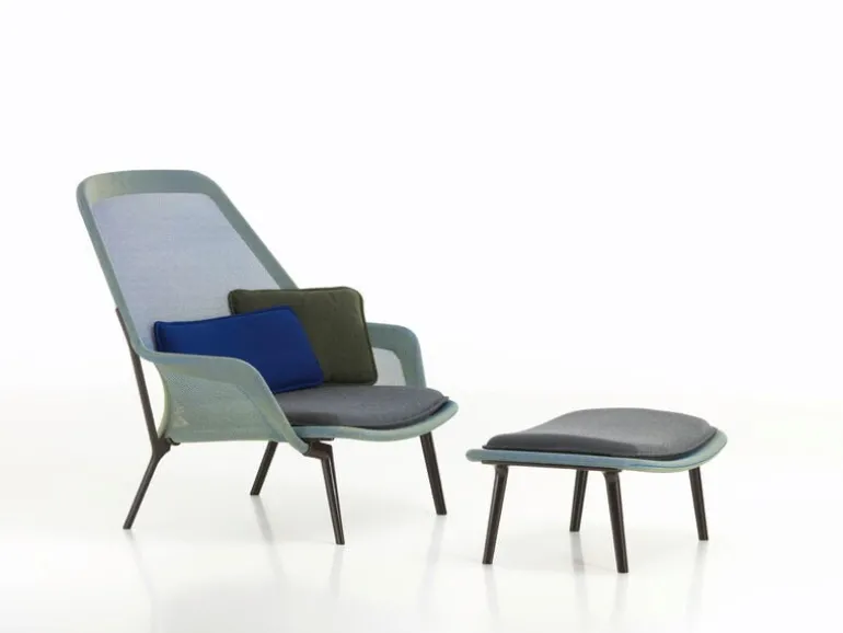 Vitra’s Slow Chair is an exceptionally light and comfortable armchair designed by Ronan and Erwan Bouroullec. The comfortability of Slow Chair comes from the fabric sling cover that is stretched over the metal frame. Despite its generous size, the Slow Chair is a lightweight and easily movable furniture, and the translucent knit emphasizes its lightness. The combination is perfected with thin seat and back cushions and appealing colors.