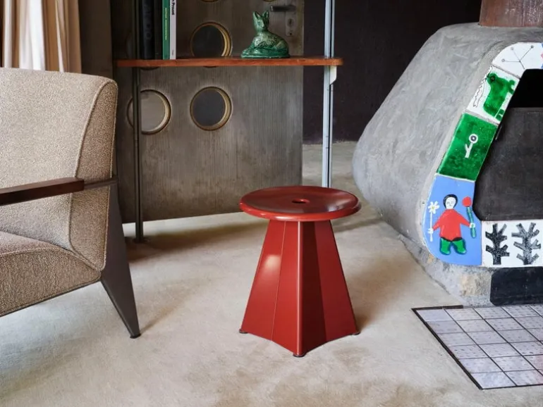 Vitra’s Tabouret Métallique was originally designed by Jean Prouvé in 1936 and reissued by Vitra in 2022. Tabouret Métallique, which is French for “metallic stool”, consists of a round seat and a fascinating angular leg structure, which Prouvé later also used in his Trapèze table. The Tabouret Métallique stool also works perfectly as a small side table, for example, next to a lounge chair, and it has plastic gliders on the bottom to protect the floor from scratches.