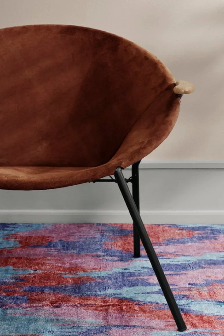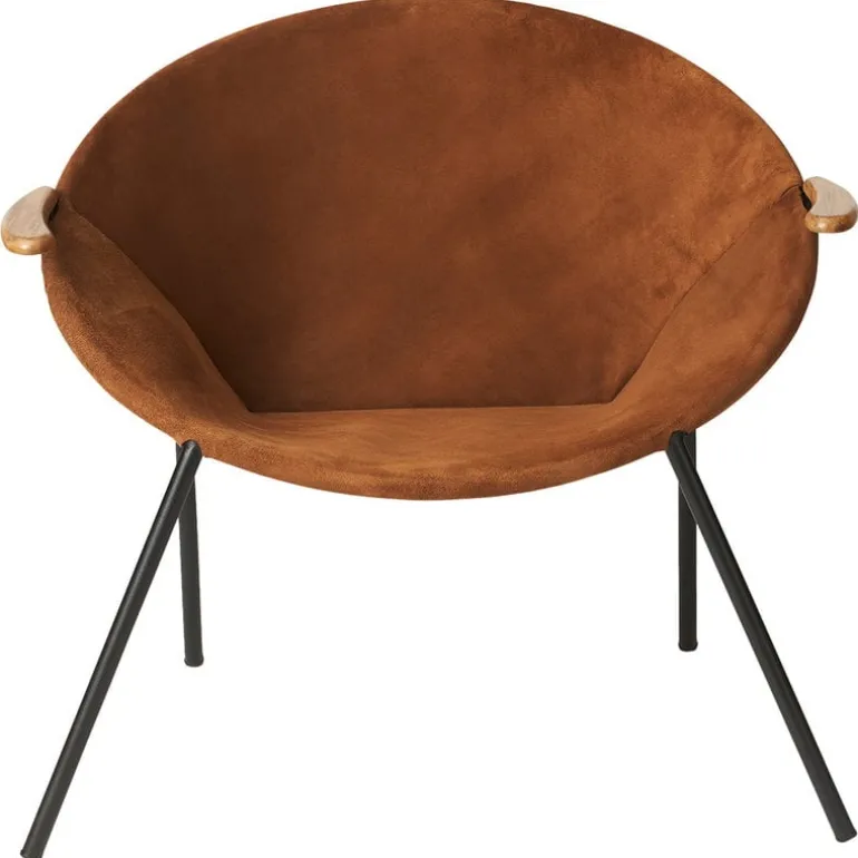 Balloon lounge chair, designed by Hans Olsen in 1955, is a joyful piece of Danish design characterized by a round silhouette and exquisite materials. Re-released by Warm Nordic as part of the collection of Danish design classics, Balloon captures the spirit of the 1950s by combining a playful, experimental attitude with skilled craftsmanship and sophisticated appearance. Handcrafted in Denmark, the round steel frame of Balloon has an inviting suede seat. The armrests are solid teak, and the leather has been fastened with laces that make a decorative detail to the back of the chair. Thanks to its lightweight structure and fascinating appearance from front to the back, Balloon will settle both by the wall or to the center of the room.