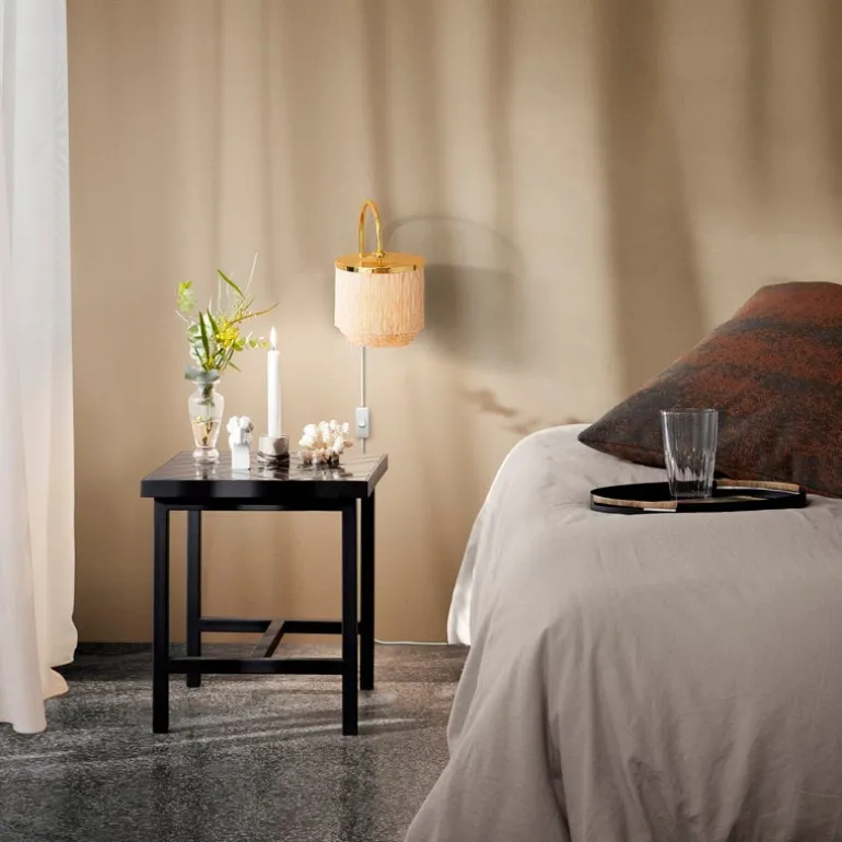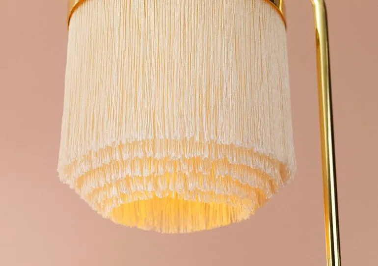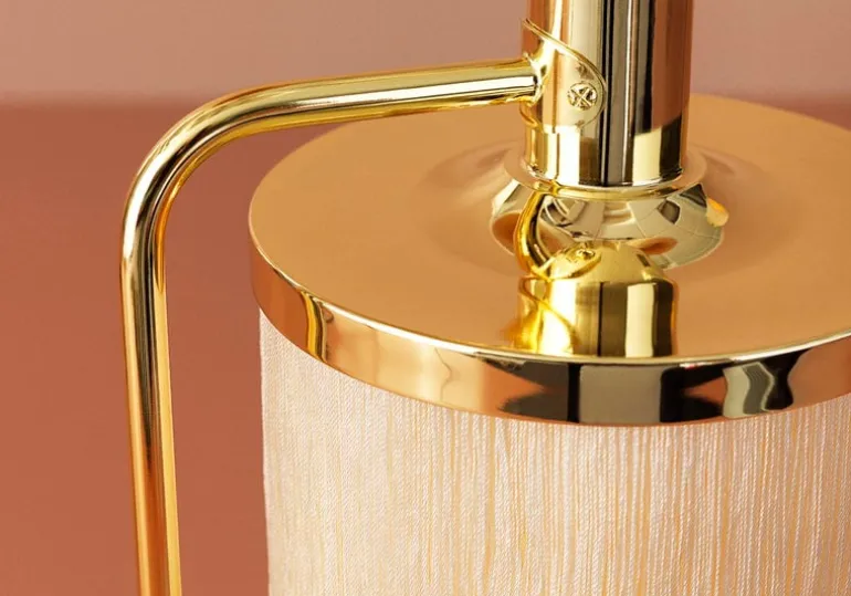 The Fringe table lamp’s graceful look is created with the union of polished brass and delicate cream-colored fringes that filter light softly, creating a pleasant, warm atmosphere in the room. Fringe beautifully complements romantic interiors furnished with antique mirrors and sumptuous drapes, but the tactile design will also fit a more modern setting, adding an elegant yet playful touch to the decor on the windowsill or night stand.