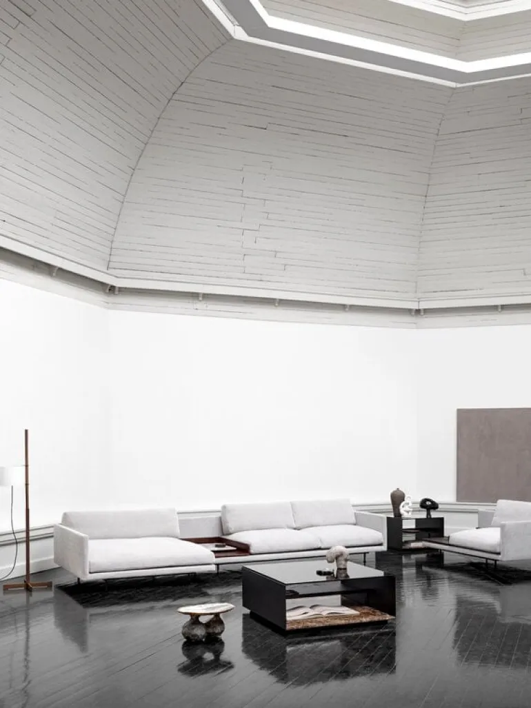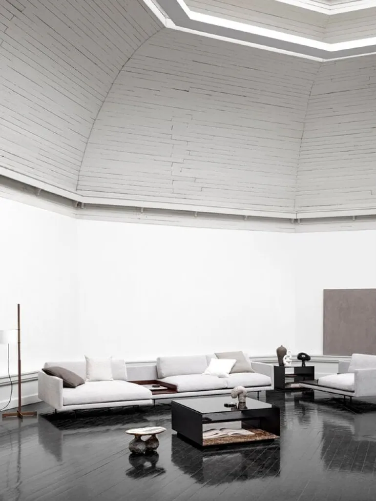 Wendelbo’s Expose side table stores and shows, exposes and reveals at the same time, as the name of the table already suggests. Designed by Jonas Wagell, the table hides the most important objects and treasures in the living room under its dark glass top revealing a hint of what’s hidden underneath. The bottom level of the table is made of marble – varying patterns of material enhance the Expose side table’s unique character even more.