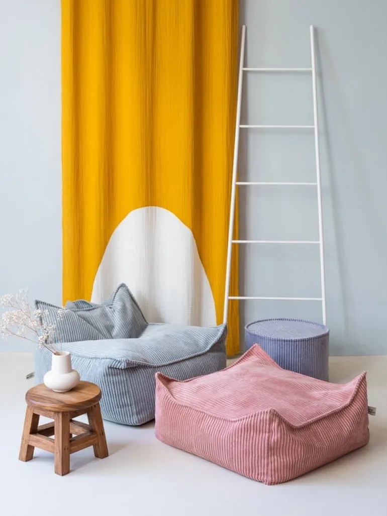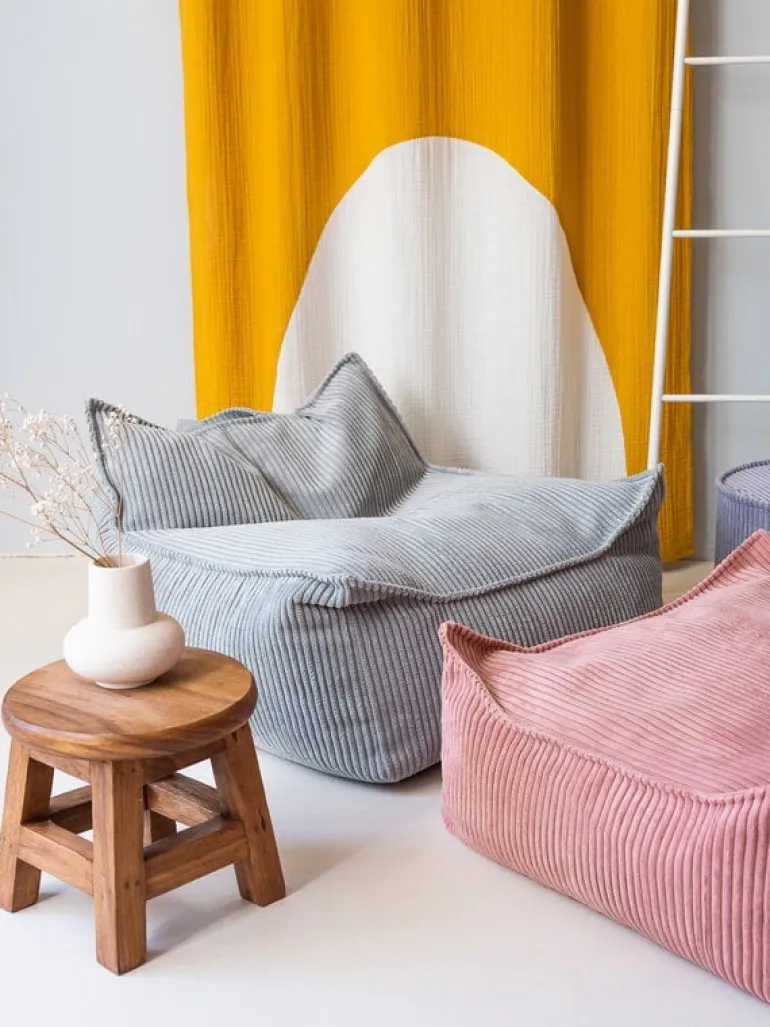 Wigiwama’s Beanbag chair offers a cozy space for all kinds of relaxation and lounging. Designed especially for the youngest of the family – but suitable for their adults, as well – the soft chair invites you to dive into its embrace to read, play, lounge or even take a nap! The beanbag chair is filled with polystyrene and upholstered with a removable corduroy cover. The smooth fabric is made of recycled PET bottles – so the Beanbag chair is actually giving a new life to plastic that has already once been used!