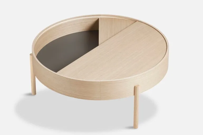 Woud’s Arc coffee table, designed by Julie Begtrup and Ditte Vad, is named after the mathematical concept referring to a connected section of the circumference of a circle. The math-inspired name alludes to the table’s geometric design and the adjustable table top, with plenty of storage space underneath for remote controls, magazines, and all sorts of small household items. The sturdy, dynamic table top is supported by three slender legs that add a touch of playfulness to the table’s minimalist design.
