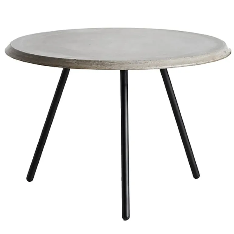 Soround from Woud is a modern minimalist coffee table designed by the Danish design studio NUR. Resting on three slender metal legs, the table’s round top is made of highly polished fiber concrete and has a stylish, slightly slanted edge.