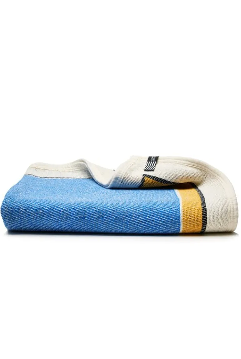 ZigZagZurich’s Too blue blanket evokes the carefree mood of spring with its sweet, harmonious colors graphic design. The beautiful pattern was created when designer Emily Nam played with charcoal and soft pastels on paper. The versatile throw fits many rooms of your home: drape it over your bed as a stylish bedspread or place the throw in the corner of the living room sofa as a cozy nap blanket! The Too blue blanket can also be brought with you for a picnic in the park – the luxuriously large 55.12 x 62.99 in (140 x 160 cm) blanket can easily accommodate several picnickers. The blanket is woven from high-quality recycled cotton jacquard, giving it a soft feel that wraps you in warmth and comfort.