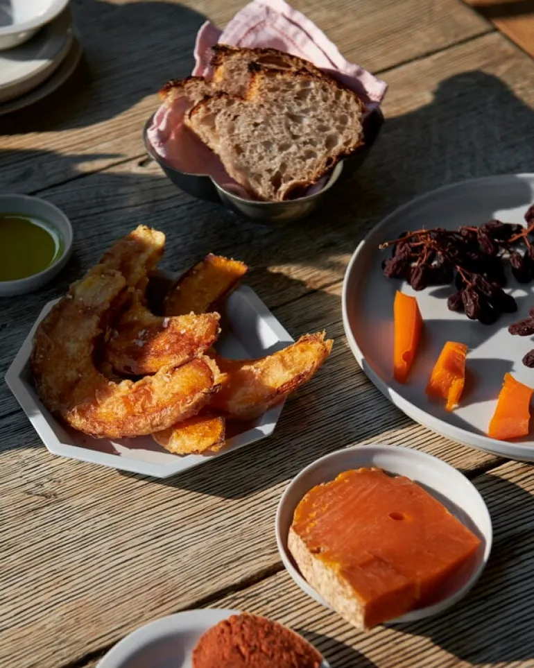 The TY Anise porcelain collection is made of clay with a traditional Japanese technique used in the town of Arita for decades. The method and the material make the tableware extremely durable: the unglazed plate is resistant to heat and stains. As the clay used may contain traces of iron, the gray shade of the plates may vary slightly, making each plate totally unique.