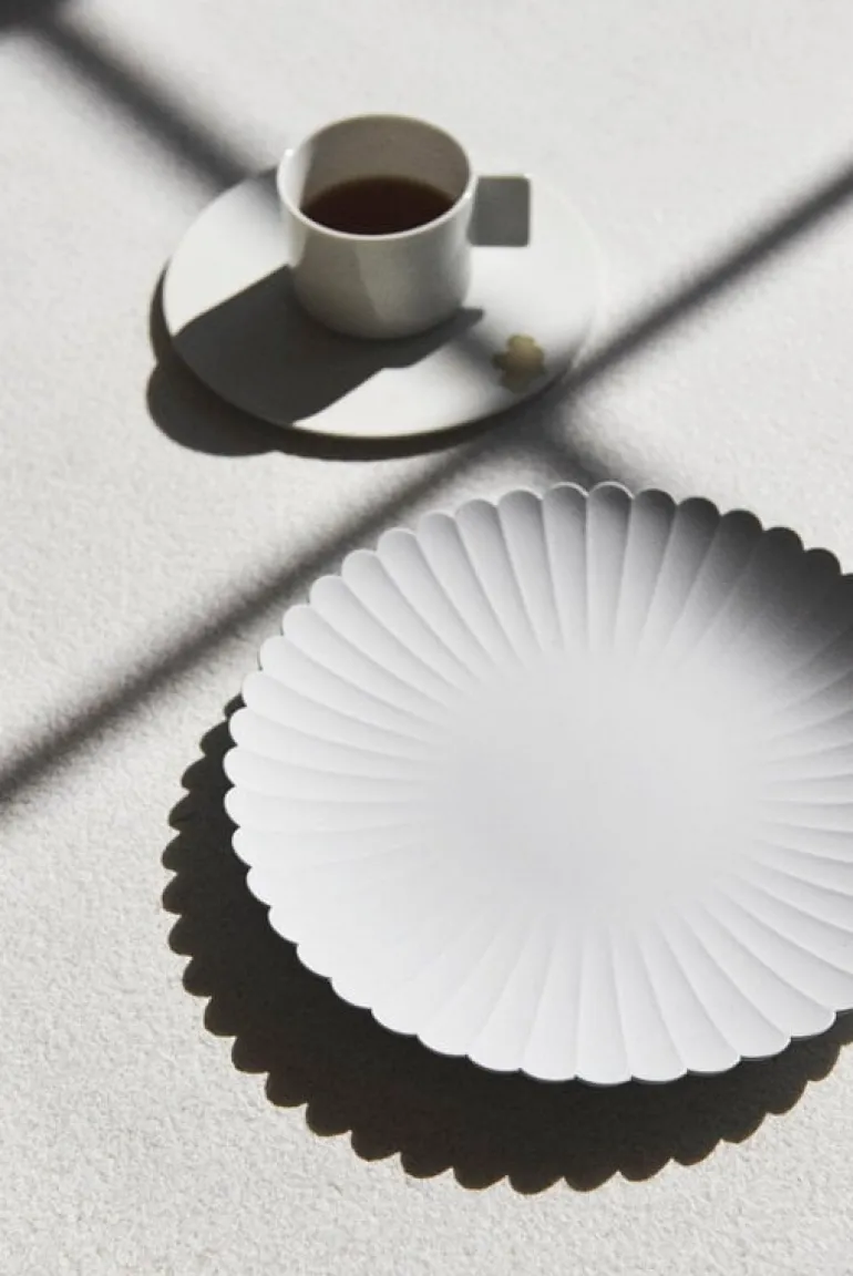 The TY Palace porcelain collection is made of clay with a traditional Japanese technique used in the town of Arita for decades. The method and the material make the tableware extremely durable: the unglazed plate is resistant to heat and stains. As the clay used may contain traces of iron, the gray shade of the plates may vary slightly, making each plate totally unique. In addition to breakfasts, dinners and desserts, the TY Palace plate will delight outside the kitchen as a storage container for your favorite jewelry and other small treasures in the home.
