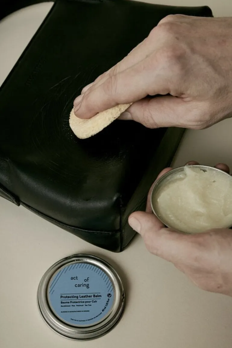 Act of Caring’s Protecting Leather Balm is a gentle product designed for keeping your shoes, handbags and leather chairs beautiful for years to come. Containing natural sandalwood and tea tree oils, the balm keeps leather hydrated and protects it from excess moisture and stains. The small, 0.34 fl oz (10 ml) aluminum pack is easy to slip into your handbag or travel bag – now you can take care of your leather products wherever you travel!