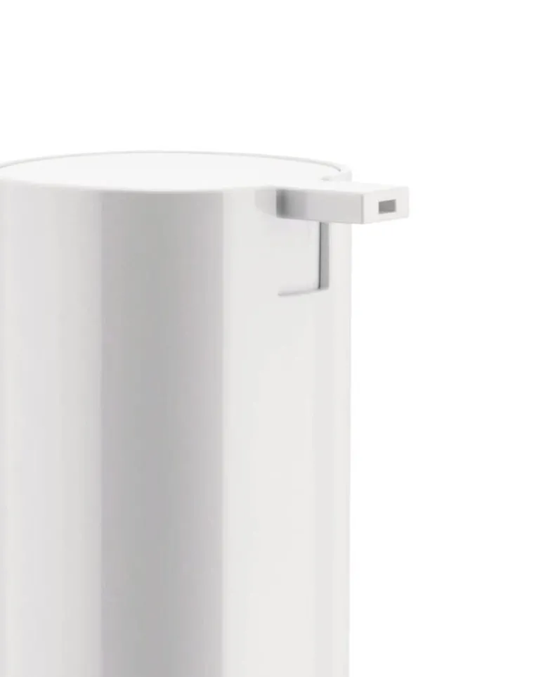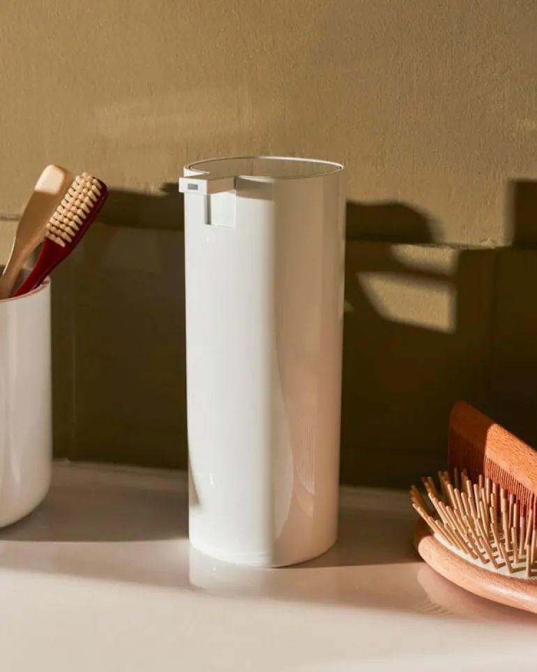 Alessi’s Birillo liquid soap dispenser is made of sturdy, easy-to-clean thermoplastic resin with a white, high-gloss finish.