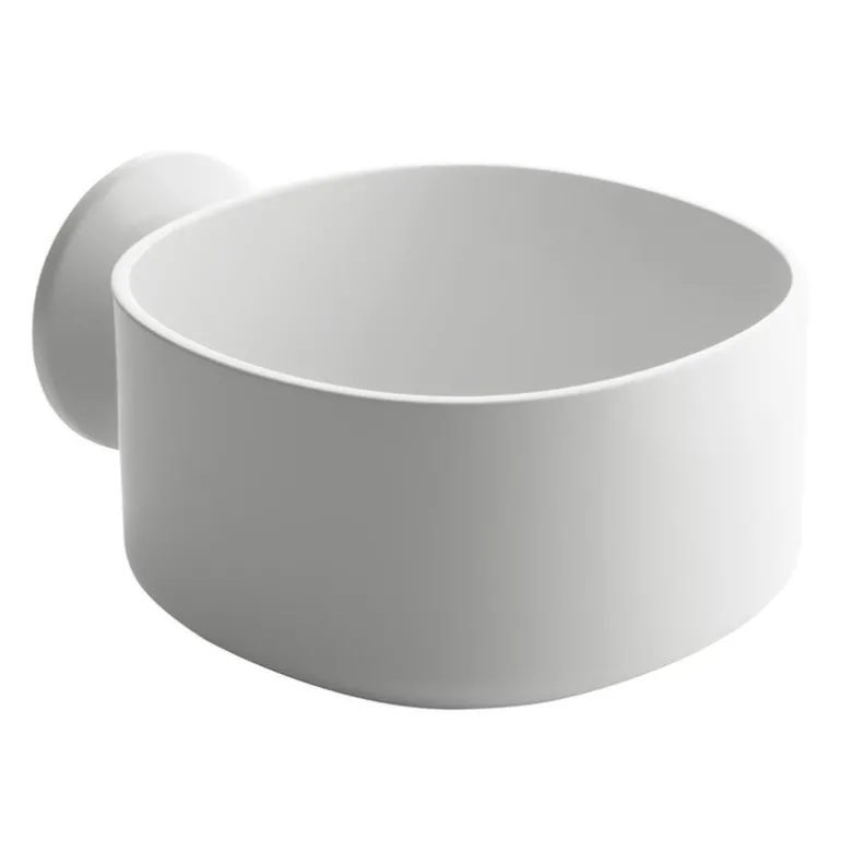 Alessi’s Birillo shower-bathroom caddy is made of sturdy, easy-to-clean acrylic with a white, high-gloss finish. The soap dish is attached to the wall with a suction cup.