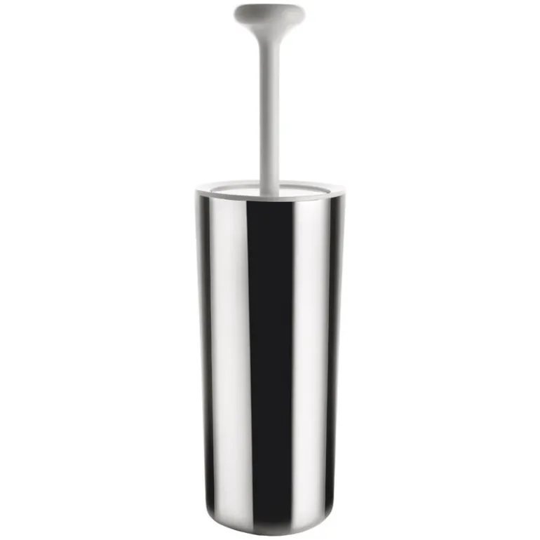 Alessi’s Birillo toilet brush is made of sturdy, easy-to-clean acrylic with a white finish. The toilet brush is housed in a sleek, mirror-polished stainless steel container.