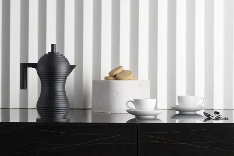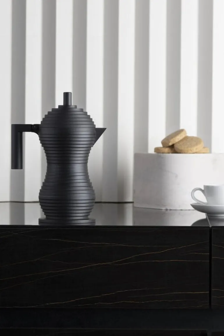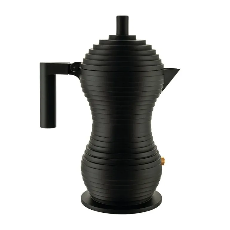 Alessi’s Pulcina espresso maker combines Michele de Lucchi’s unique esthetic style with high-quality Italian design. Launched in 2015, Pulcina has an eye-catching, flowing shape consisting of small layers and complemented with a bold, angular handle. The espresso maker’s innovative design stops the brewing exactly at the right time to prevent your coffee from getting a bitter aftertaste. Pulcina is Italian for chick, referring to the shape of the small, drip-free spout.