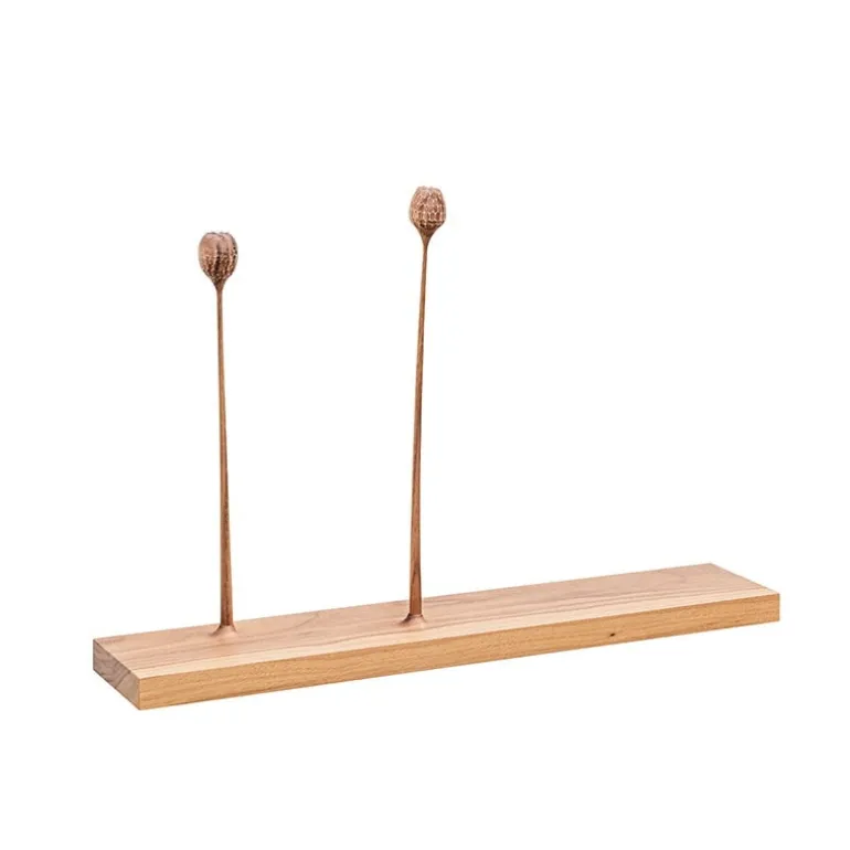 The Kukkii Bud sculpture by the Finnish master cabinetmaker Antrei Hartikainen is part of a collection of unique wooden flowers and mushrooms standing on a slender stem, creating a delicate ambience in smaller or larger groups. These handmade sculptures may resemble each other to varying degrees, but two exactly identical pieces can’t be found – the final look of your sculpture will thus only be revealed when you receive it.