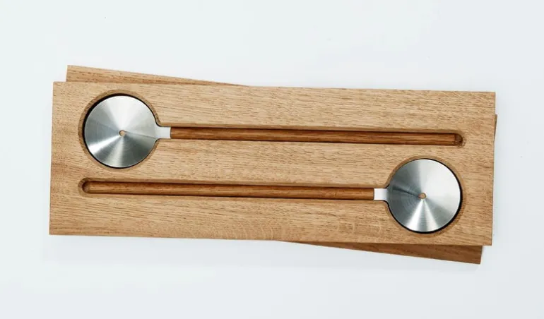 Taite salad servers’ design is founded on simple shapes and high-quality craftsmanship. Created for Finnish Design Shop’s anniversary collection, the design is based on a laser cut piece of metal that the designer, master cabinetmaker Antrei Hartikainen, bent to a cup-like shape with a hole in the middle, before attaching it to an oak handle with the help of beech wedges. The natural grain and simple form of the handle beautifully highlight the bent shape of the metal sheet, giving the salad servers their name, Taite (Finnish for ”a fold” or ”a pleat”). The lovely, minimalist salad servers come in a handmade oak gift box.