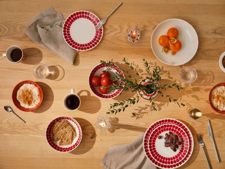 The pattern was created to accentuate the simple, soft lines of the 24h tableware range designed by Heikki Orvola. Originally created for the designer’s own use, 24h found its way to the Arabia assortment in 1996, and it has been a firm favorite among fans of functional design ever since. The name 24h refers to the versatility of the range: 24h – tableware for every hour of the day. Tuokio, in turn, is Finnish for “moment” and refers to the fleeting nature of time.