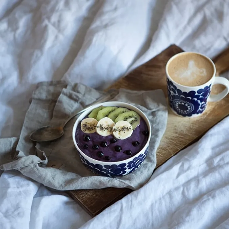 Arabia’s Esteri mug features a beautiful floral motif, designed by Esteri Tomula in honor of the factory’s centenary in 1973. Named after its designer, the Esteri pattern adorned tableware originally both in blue and brown. The fresh blue-and-white pattern adds a lovely touch of Finnish design of the 1970s to casual dinners as well as celebrations.