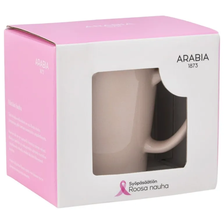 Arabia’s Mainio mug is colored in a soft rose hue. The pink, ceramic mug is part of the Pink Ribbon special collection, which supports breast cancer awareness and Finnish cancer research. For each product sold, Arabia donates one euro to the Finnish Pink Ribbon campaign.
