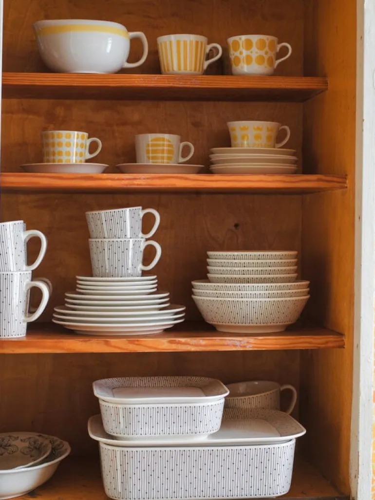 Symbolizing the power of light, the Sarastus (”dawn”) pattern was inspired by Raija Uosikkinen’s Ivalo decoration from 1965, with its rhythmic lines arranging into a new, fresh shape. The lightweight and stackable Mainio Sarastus cups, bowls and plates are dishwasher-proof and suitable for the oven as well as the freezer.