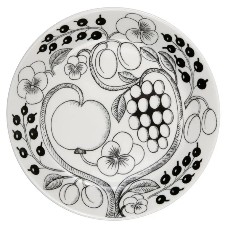 The Paratiisi plate by Arabia is adorned with a black and white theme that gives a clear, graphic touch for the abundant floral pattern.