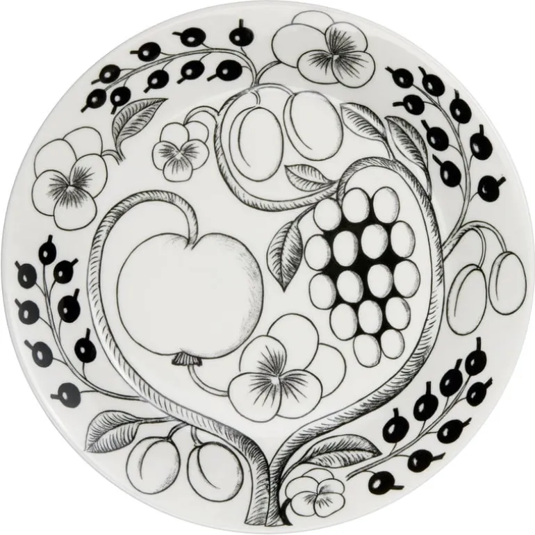 The Paratiisi plate by Arabia is adorned with a black and white theme that gives a clear, graphic touch for the abundant floral pattern.