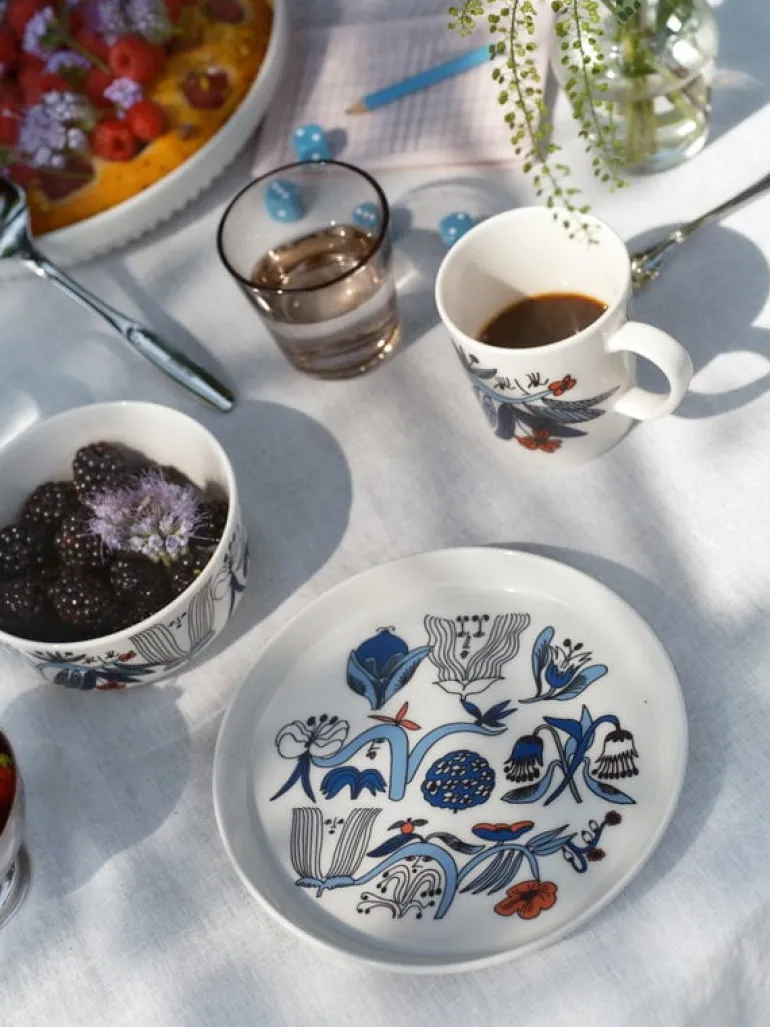 Arabia’s Puutarhurit bowl is adorned with a lively pattern created by the visual artist Armi Teva. The design features whimsical creatures that are hidden among garden flowers and leaves. The small bowl is a versatile companion: it’s ideal for breakfast cereals, lunch soups or serving desserts, candies and other tasty snacks.