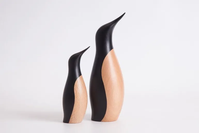 Penguin by Architectmade is a delightful wooden figurine designed by Hans Bunde in 1954. Bunde first created the design as a gift for his siblings, shaping a Penguin for each of his sisters. The gracious, majestic Penguin has a hand-painted back that represents the bird’s plumage while the unpainted chest highlights beech wood’s beautiful natural grain.
