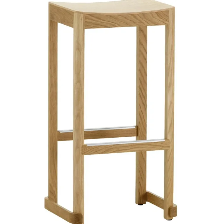 The Atelier bar stool by Artek has a balanced appearance and lightweight construction that make it well suited for restaurants, cafés as well as private use. The softly bent seat and connecting bars between the front legs give the bar stool an easy, laid-back spirit, and the footrests have been reinforced by aluminum inlays for extra stability.
