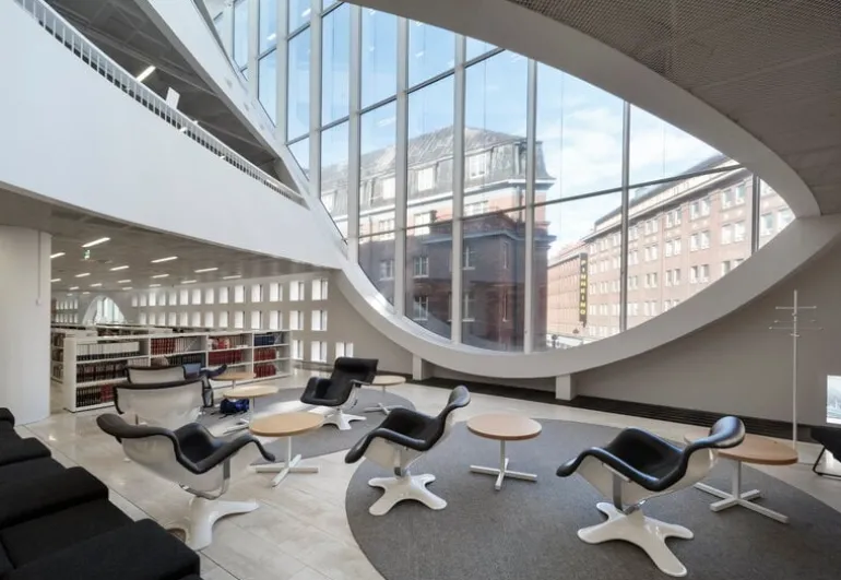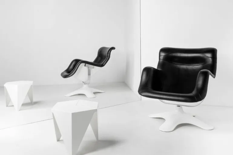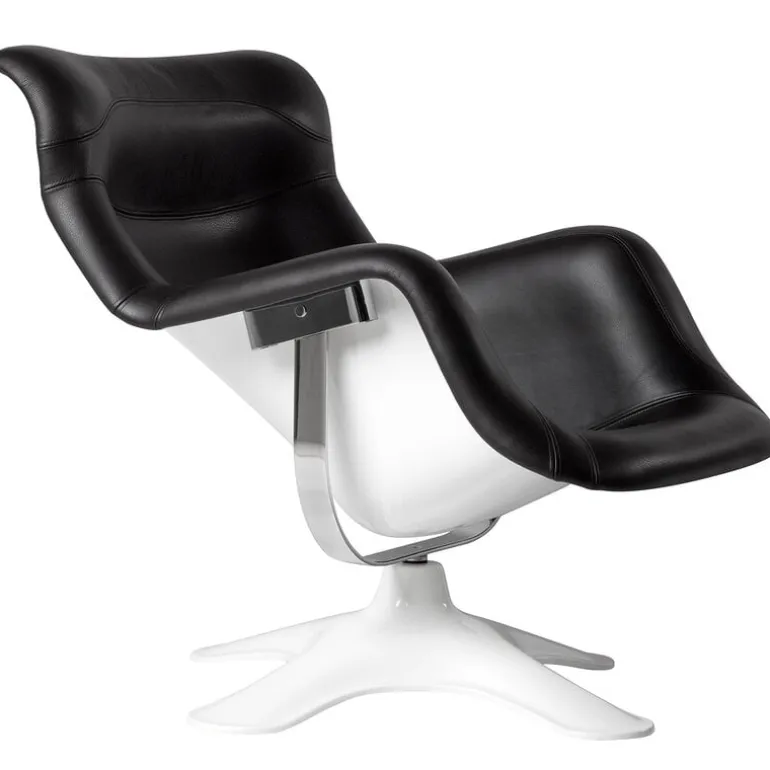 Artek’s Karuselli lounge chair, designed by Yrjö Kukkapuro, is one of the most famous lounge chairs in the world. Kukkapuro began developing the leather-upholstered fiberglass chair in the 1950s, arriving at the famous shape in 1964. The international launch of the chair took place at the Cologne Furniture Fair in 1965, resulting in immediate success.