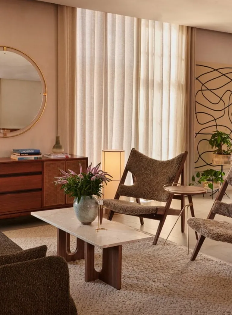 Audo Copenhagen’s Androgyne lounge table is a charming combination of contrasting features. Crafted from walnut veneer and unique Kunis Breccia stone, the table plays with feminine and masculine elements, soft cuts and sharp edges, as well as simple and bold silhouettes. Designed by Danielle Siggerud, the harmonious, stable look of the Androgyne table is a focal point of the decor, equally pleasing to use and to gaze upon. The elegant lounge table is the perfect companion for a couch, but it can just as well be used as a gorgeous side table.