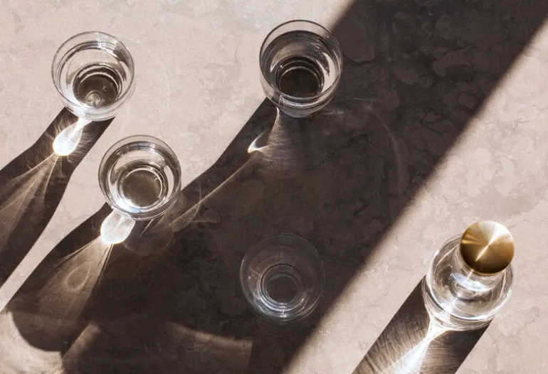 Audo Copenhagen’s Bottle carafe is a stylish and versatile pitcher made of mouth-blown glass – a stunning fit for both the breakfast table and a dinner setting. Fill it with fresh juice or add water with delicious fruit slices: a beautiful carafe tempts you to sip enough water during the day. Designed by Norm Architects, the beautiful Bottle pitcher resembles – as the name suggests – a glass bottle and is finished with a beautiful brass cap that stays firmly but smoothly in place thanks to a silicone lining.