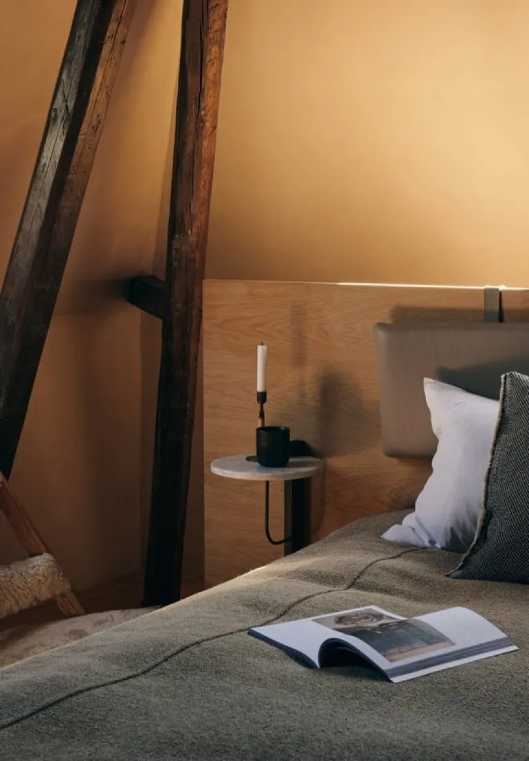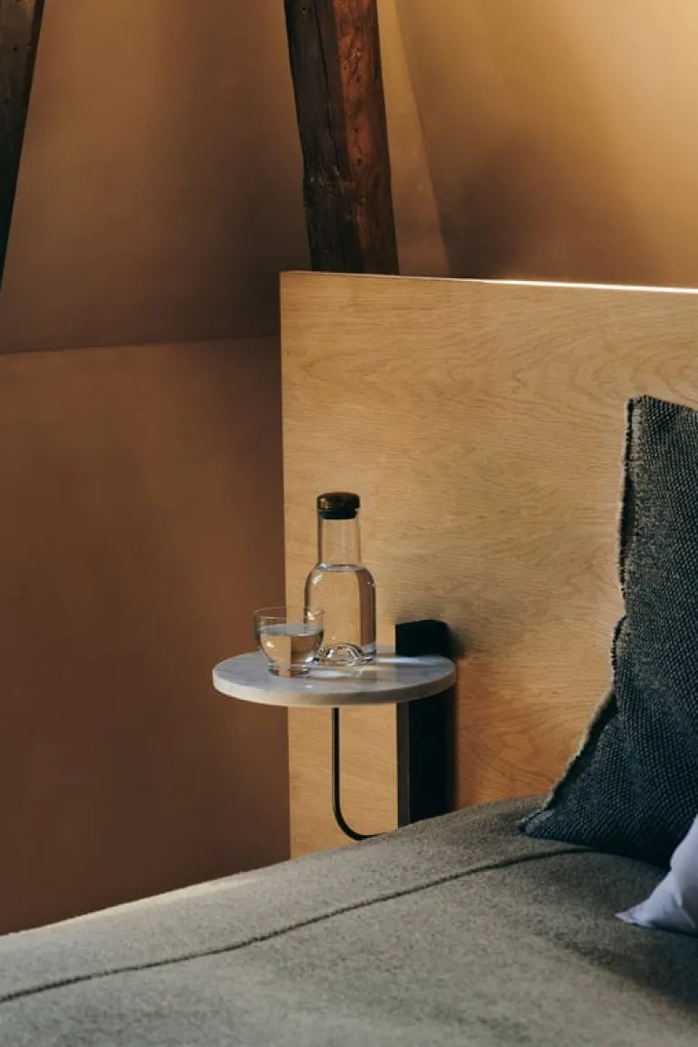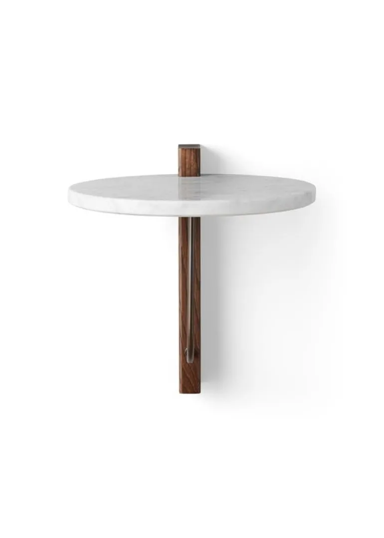 Audo Copenhagen’s Corbel shelf is an elegant, modern wall shelf combining a round, white brass top and brackets made of dark-stained oak and bronzed brass. Designed by studio Krøyer-Sætter-Lassen, the Corbel shelf takes its name and design cues from the weight-bearing corbels used in buildings. Adapting beautifully to any environment, this minimalist wall shelf is suitable for use as a wall-mounted nightstand or side table as well as a platform for storing and displaying your favorite objects.