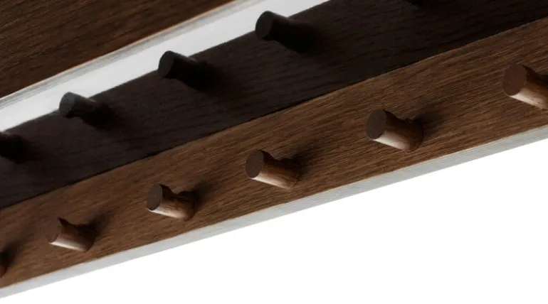The Epoch shelf with rack is made of oak veneered plywood. The natural warmth of the wood only adds to the serene atmosphere.