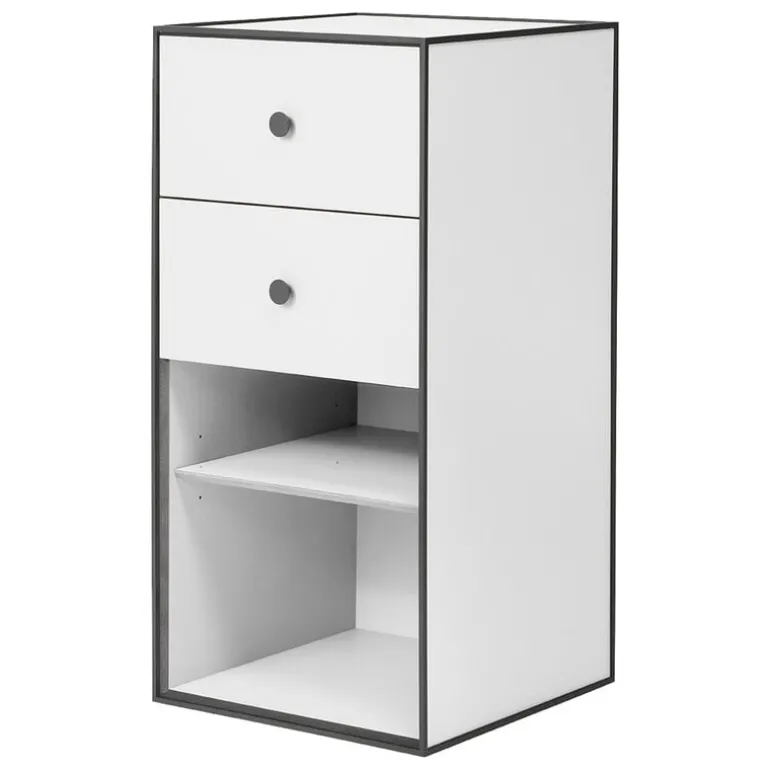 The Frame sideboard from Audo Copenhagen is part of the brand’s classic Frame storage system. The minimalist cabinet consists of a geometric storage box, complete with two drawers and an open shelf, and is characterized by black metal frames that add a nice contrast to the otherwise reduced design.