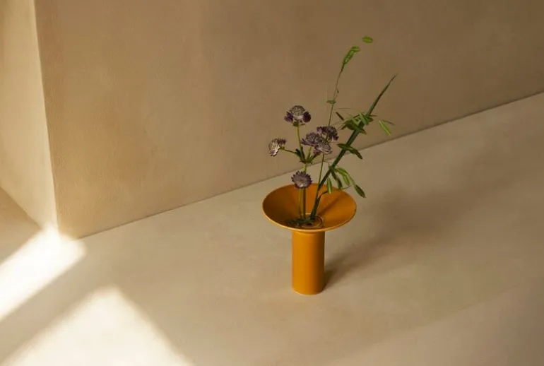 Audo Copenhagen’s Hana vase draws inspiration from Japanese ikebana arrangements, resulting in an exquisite ceramic piece. Created by the design studio Krøyer-Sætter-Lassen, the Hana vase features a cylindrical base and a wide cone-shaped rim resting atop, providing an elegant framework for various types of floral compositions. Crafted from glazed stoneware, this vase comes equipped with a Japanese kenzan flower frog, featuring differently sized holes to facilitate the arrangement of flower stems and branches. When needed, the kenzan can also be detached, allowing Hana to serve as a more traditional vase for classic flower bouquets.
