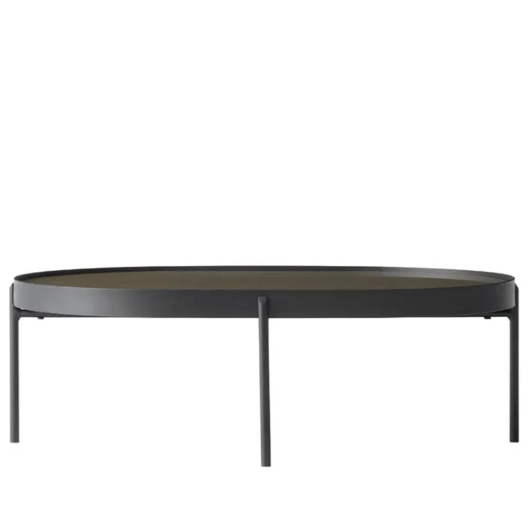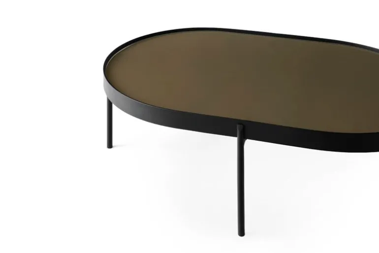 Audo Copenhagen’s NoNo is a light coffee table featuring a colored glass tabletop and slender, rounded metal frame. NoNo is a collaboration of two Scandinavian design teams, Note Design Studio from Sweden and Norm Architects from Denmark, who met by coincidence and noticed that both shared an interest in the combinations of solid tabletops and slender legs. NoNo’s colored, transparent glass top fits easily together with many kinds of sofas, and it also makes an elegant side table or Japanese-style low dining table. NoNo is available in two sizes and different tones.