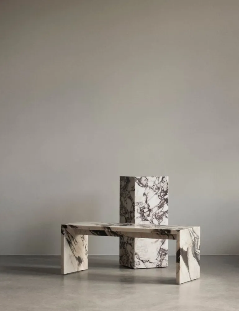 Designed by Norm Architects, the Plinth collection celebrates the natural, elaborate beauty of marble. Every piece is an individual, made even more unique by patina over the years.