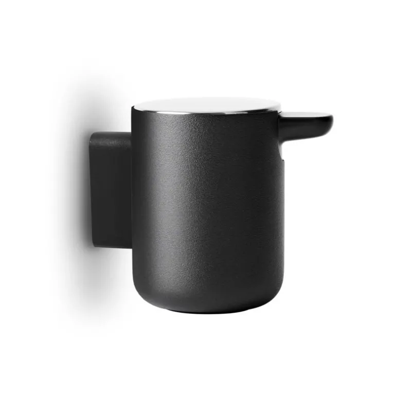 Audo Copenhagen’s practical soap dispenser, designed by Norm Architects, can be mounted to the bathroom wall. The dispenser not only saves space but is easy to clean, use and refill. A simple touch of the steel lid dispenses the soap.