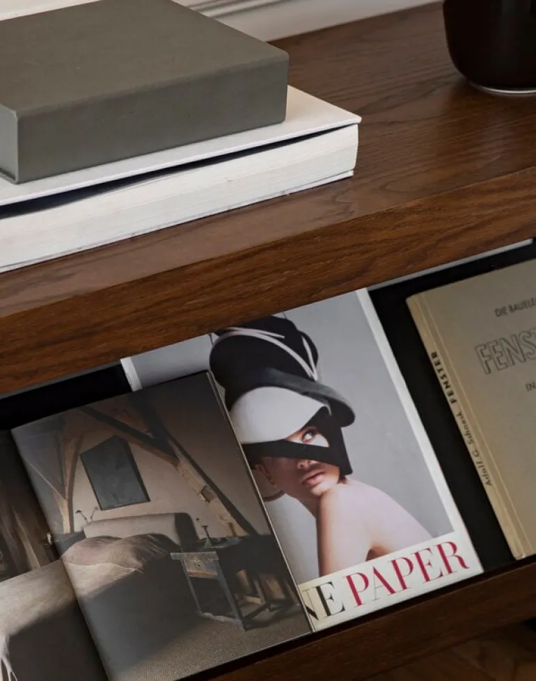 Shelf H114 is a three-level shelf that makes a great low bookshelf or display shelf for all your most beautiful belongings. The name H114 refers to the shelf’s height, 44.88 x 0 in (114 x cm. cm). The shelf can be complemented with back panels or magazine racks.