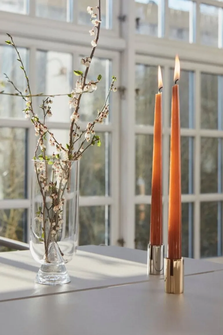 The Glacies vase by AYTM got its name from icebergs: the vase’s cone-shaped base does indeed resemble a piece of ice, the peak of which beautifully pierces through the cylindrical water container. Made of mouth-blown glass, the Glacies vase is a fascinating combination of geometric shapes and textures, and it makes a charming piece both empty or when filled with flowers or green branches. The sculptural vase is also well suited as a gift.